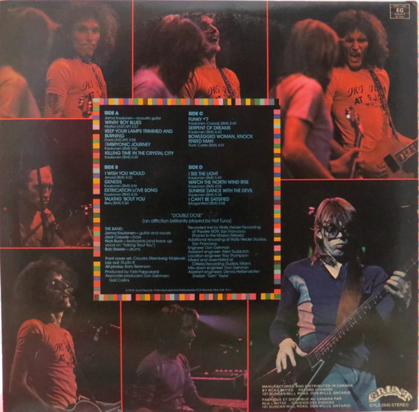 Recorded Live by Wally Heider Recording at Theatre 1839, San Franciso. Additional recording at Wally Heider Studios. Mastered at Sterling Sound.