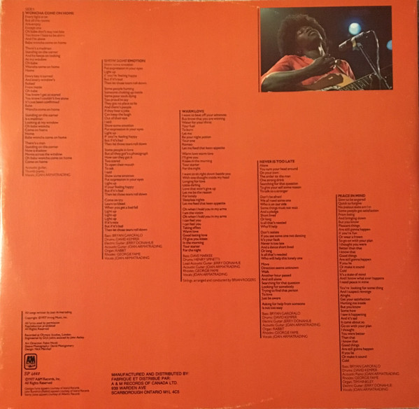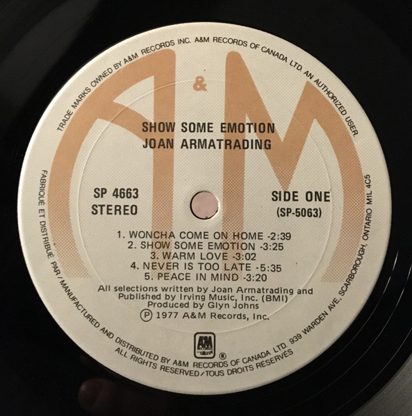 [Spine:] ℗1977 A&M Records, Inc. [Rear sleeve:] Manufactured and distributed by / Fabriqué et distribué par:A & M Records of Canada Ltd. 939 Warden Ave Scarborough Ontario M1L 4C5 [Inner sleeve:] Copyright ©1977 Irving Music, Inc.